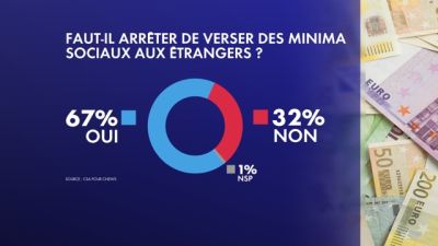 கிட்டத்தட்ட பத்தில் ஏழு பேர் அல்லது 67% சதவீதமானவர்கள் இந்த ஆதரவை வெளியிட்டுள்ளனர். பிரான்சில் வசிக்கும் வெளிநாட்டவர்களுக்கு ஒற்றுமைகான வருமானம் (le Revenu de solidarité active -RSA),வயது வந்த உடலூனமுற்றவர்களுக்கான கொடுப்பனவு (l’Allocation aux adultes handicapés -AAH), முதியோருக்கான கொடுப்பனவு (l’Allocation spécifique aux personnes âgées -Aspa) மற்றும் குறிப்பிட்ட சில விஷேட கொடுப்பனவுகள் (l'Allocation spécifique de solidarité -ASS) போன்ற கொடுப்பனவுகளை நிறுத்துவதற்கு பொதுமக்கள் ஆதரவு வெளியிட்டுள்ளனர்.