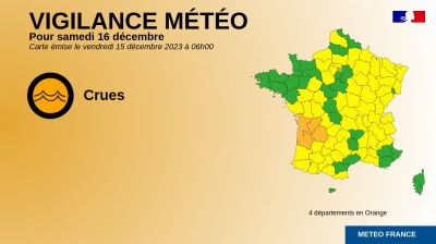 Charente-Maritime, Charente, Gironde மற்றும் Dordogne ஆகிய நான்கு மாவட்டங்களில் பலத்த மழை மற்றும் வெள்ளம் ஏற்படும் என எச்சரிக்கப்பட்டு அங்கு ‘செம்மஞ்சள்’ எச்சரிக்கை விடுக்கப்பட்டுள்ளது.