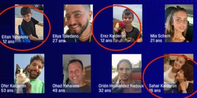 12 வயதுடைய ஐத்தான் யாஹாலோமி, 12 வயதுடைய எரஸ் கலேத்ரோன் மற்றும் அவருடைய சகோதரியான 16 வயதுடைய சாரா ஆகிய பிரெஞ்சுக் குடிமக்கள் ஹமாசினால் கடத்திச் செல்லப்பட்டு 50 நாட்களின் பின்னர் பெரு முயற்சியினால் விடுவிக்கப்பட்டுள்ளனர்.