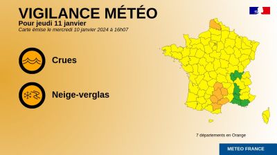 Hérault, Aude, Tarn, Aveyron, Cantal மற்றும் Corrèze ஆகிய ஆறு மாவட்டங்களில் கடும் பனிப்பொழிவு இடம்பெறும் எனவும், அங்கு செம்மஞ்சள் எச்சரிக்கை விடுக்கப்பட்டுள்ளதாகவும் Météo-France அறிவித்துள்ளது.
