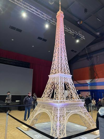 கிண்ணஸ் சாதனைக்காக - தீக்குச்சிகளால் கட்டப்பட்ட ஈஃபிள் கோபுரம்!