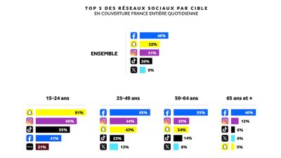 வயது அடிப்படையில் பிரிக்கப்பட்டு ஆய்வு மேற்கொள்ளப்பட்டதில் பிரெஞ்சு இளைஞர்கள் தவிர்த்து ஏனையவர்களிடம் அதிகளவு பிரபலமாக இருப்பது பேஸ்புக் சமூக வலைத்தளம் என தெரிவிக்கப்பட்டுள்ளது.