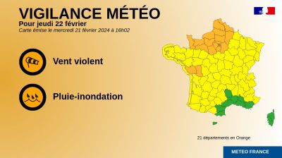 புயல், மழை வெள்ளம் உள்ளிட்ட இயற்கை அனர்த்தம் காரணமாக இல் து பிரான்ஸ் மாவட்டங்கள் உள்ளிட்ட 21 மாவட்டங்களுக்கு செம்மஞ்சள் எச்சரிக்கை விடுக்கப்பட்டுள்ளது.
