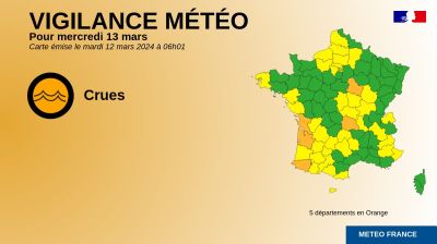 Charente-Maritime, Gironde, Puy-de-Dôme, Pyrénées-Atlantique மற்றும் Yonne ஆகிய ஐந்து மாவட்டங்களில் பலத்த மழை பெய்யும் எனவும், பல பகுதிகளில் வெள்ளம் ஏற்படும் எனவும் வானிலை ஆய்வு மையம் குறிப்பிட்டுள்ளது. ஐந்து மாவட்டங்களுக்கும் 'செம்மஞ்சள்' எச்சரிக்கை விடுக்கப்பட்டுள்ளது.