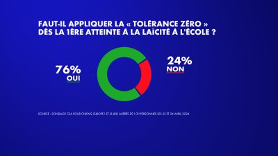 மதச்சார்பின்மையை (laïcité) 100% பாடசாலைகளில் நிறைவேற்ற வேண்டும். 0 சதவீதம் கூட விட்டுக்கொடுப்பு (tolérance zéro) இருக்கக் கூடாது என பெரும்பான்மையான மக்கள் தெரிவித்துள்ளனர்.