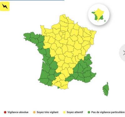 மற்றும் Pas-de-Calais, Nord, Somme, Seine-Maritime, Oise, Aisne, Ardennes, Marne, Eure, Calvados, Manche, Meuse, Meurthe-et-Moselle, Moselle, Bas-Rhin,Haut-Rhin, Yonne, Aube, Orne, Eure-et-Loir, Loiret, Haute-Marne, Vosges, le Territoire de Belfort, Haute-Saône, Côte-d’Or, Doubs, Jura, Nièvre, Cher, Indre, Loir-et-Cher, Indre-et-Loire, Maine-et-Loire, Mayenne, Sarthe, Vienne ஆகிய மாவட்ங்களிற்கும் இந்த எச்சரிக்கை இன்று வழங்கப்பட்டுள்ளது.