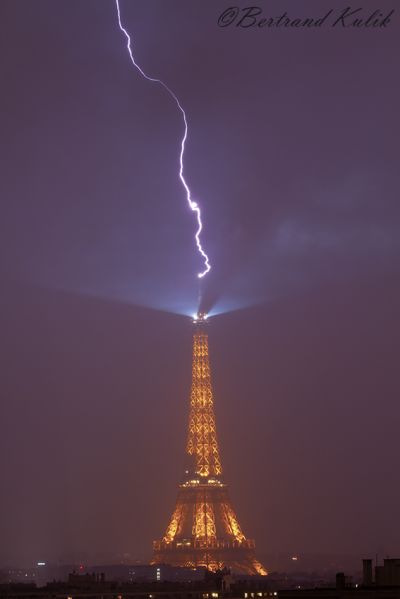 இந்நிலையில், நேற்று பரிசில் பலத்த மின்னல் தாக்குதல்கள் பதிவான நிலையில், ஈஃபிள் கோபுரம் மீதும் மின்னல் தாக்கியுள்ளது. ஈஃபிள் கோபுரம் மீது மின்னல் தாக்குவது, படிஸ் 16 ஆம் வட்டாரத்தில் உள்ள Palais d'Iéna கட்டிடத்தில் பொருத்தப்பட்டுள்ள கமராவில் பதிவானது.