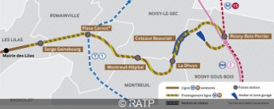 Romainville, Noisy-le-Sec, Montreuil நகரங்கள் வழியாக Rosny-sous-Bois வரை இந்த மெற்றோ பயணிக்க உள்ளது. eட்டு வருட உழைப்பினை அடுத்து, ஜூன் 13, வியாழக்கிழமை நண்பகல் இந்த புதிய நிலையங்கள் திறந்துவைக்கப்பட உள்ளன..