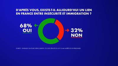 ’இன்றைக்கு, பிரான்சில் நிலவும் பாதுகாப்பின்மைக்கும் குடியேற்றத்துக்கும் தொடர்பு உள்ளதா?’ எனும் கேள்வியுடன் புதிய கருத்துக்கணிப்பு ஒன்று sondage CSA நிறுவனத்தினால் மேற்கொள்ளப்பட்டிருந்தது. இதில் 68 சதவீதமான மக்கள் ‘ஆம்’ என பதிலிட்டுள்ளனர்.