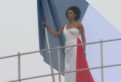 Grande palais கட்டிடத்தின் கூரையில் இருந்து பிரெஞ்சு தேசிய கீதம் பாடப்பட்டது. பிரான்சுக்கே உரித்தான Mezzo-soprano எனும் குரல்வளத்தில் இந்த கீதத்தை பாடகி Axelle Saint-Cirel பாடியிருந்தார். மிகவும் மனதை உருக்கும் விதமாக அது அமைந்திருந்தது. அதன் போது பிரெஞ்சு வரலாற்றில் இடம்பிடித்த பத்து பெண்களது சிலைகள் சென் நதிக்கரையில் திறந்து வைக்கப்பட்டன. சிலைகள் ஒவ்வொன்றாக மேலெழுந்து காட்சிப்படுத்தப்பட்டது.