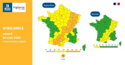 Ain, Allier, Ariège, Aveyron, Cantal, Côte-d'Or, Doubs, Haute-Garonne, Gers, Jura, Loire, Lot, Haute-Marne, Meurthe-et-Moselle, Meuse, Moselle, Puy-de-Dôme, Hautes-Pyrénées, Rhône, Haute-Saône, Saône-et-Loire, Tarn, Tarn-et-Garonne மற்றும் Vosges ஆகிய மாவட்டங்களுக்கு இந்த எச்சரிக்கை விடுக்கப்பட்டுள்ளது.