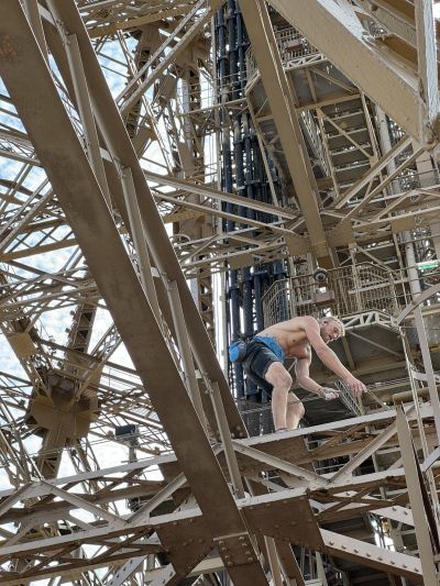 இன்று ஓகஸ்ட் 11, ஞாயிற்றுக்கிழமை பிற்பகல் இச்சம்பவம் இடம்பெற்றுள்ளது. 2.45 மணி அளவில் நபர் ஒருவர் ஈஃபிள் கோபுரத்தில் ஏறியுள்ளார். கம்பிகள் வழியே மிக ஆபத்தான முறையில் கோபுரத்தில் ஏறியுள்ளார்.