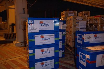 21 நாட்கள் இடைக்கால போர்நிறுத்தம் ஒன்றுக்கு அழைப்பு விடுத்துள்ள பிரான்ஸ், இந்த மருத்துவ உதவிப்பொருட்களை வழங்கியுள்ளது. யுத்தம் இடம்பெறும் பகுதிகளில் இருந்து பொதுமக்கள் வெளியேற கால அவகாசம் வழங்குவதற்காக இந்த போர் நிறுத்தத்துக்கு அழைப்பு விடுத்துள்ளது பிரான்ஸ்.