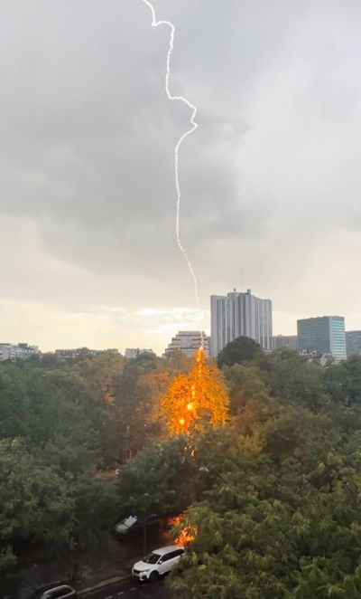 Montparnasse மயானத்தில் உள்ள மரம் ஒன்றில் மின்னல் தாக்கி, மரம் தீப்பிடித்து எரிந்துள்ளது. இந்த காட்சி புகைப்படமாக எடுக்கப்பட்டு இணையத்தில் வைரலாக பரவி வருகிறது.