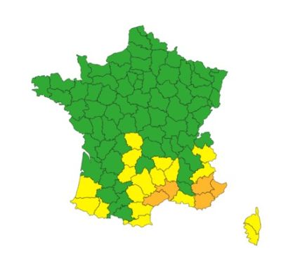 Alpes-Maritimes, Var, Alpes-de-Haute-Provence, Hérault மற்றும் Gard ஆகிய மாவட்டங்களுக்கு வெள்ள அனர்த்தம் காரணமாக ‘செம்மஞ்சள்’ நிற எச்சரிக்கை விடுக்கப்பட்டுள்ளது.