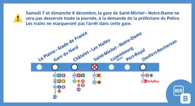 Saint-Michel நிலையம் இவ்வார இறுதி நாட்கள் முழுவதும் மூடப்படும் எனவும் அறிவிக்கப்பட்டுள்ளது.