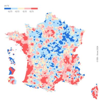பிரான்சில் உள்ள நகரங்களில் மக்கள் தொகை அதிகரித்துள்ள நகரங்களையும், மக்கள் தொகை குறைவடைந்துள்ள நகரங்களையும் INSEE ஆய்வு நிறுவனம் பட்டியலிட்டுள்ளது.