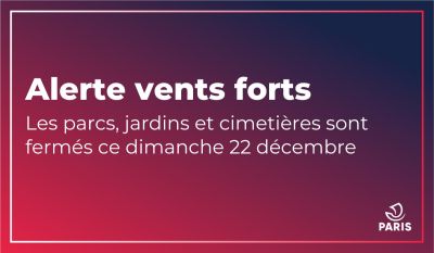 வானிலை அவதானிப்பு மையம் வெளியிட்டுள்ள தகவல்களின் படி, இன்று டிசம்பர் 22, ஞாயிற்றுக்கிழமை பரிசில் 40 தொடக்கம் 60 கி.மீ வரை வேகமான காற்று வீசும் எனவும், இதனால் மரம் முறிவுகள் போன்ற அனர்த்தம் ஏற்படும் என எச்சரிக்கப்பட்டு முன்னெச்சரிக்கை காரணமாக அவை மூடப்படுகிறதாகவும் தெரிவிக்கப்பட்டுள்ளது.