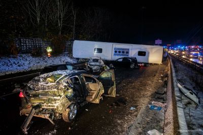 நேற்று வியாழக்கிழமைக்கும் இன்று வெள்ளிக்கிழமைக்கும் உட்பட்ட இரவில் அதிகாலை 2.30 மணி அளவில் இவ்விபத்து Chevilly-Larue (Val-de-Marne) நகரில் இடம்பெற்றுள்ளது. அதிக பனிப்பொழிவு காரணமாக பேருந்து ஒன்று கட்டுப்பாட்டை இழந்து வீதிகளில் தறிகெட்டு பாய்ந்து, ஏனைய வாகனங்களுடன் மோதி, கவிழ்ந்தது. ஒரு பேருந்தும், நான்கு மகிழுந்துகளும் மோதுண்டுள்ளன.