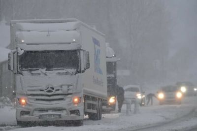 கடும் பனிப்பொழிவுக்குள் சிக்கி ஆயிரக்கணக்கான கனரக வாகங்கள் பத்துமணிநேரத்துக்கும் மேலாக வீதிகளில் தடைப்பட்டு நிற்கின்றன.