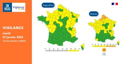 Seine-Maritime, Nord, Pas-de-Calais மற்றும் Somme ஆகிய நான்கு மாவட்டங்களுக்கு ”செம்மஞ்சள்” நிற எச்சரிக்கை விடுக்கப்பட்டுள்ளது. அங்கு 5 தொடக்கம் 10 செ.மீ வரை பனிப்பொழிவு பதிவாகும் என எச்சரிக்கப்பட்டுள்ளது.
