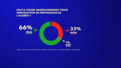 "அல்ஜீரியாவிலிருந்து வரும் அனைத்து குடியேற்றங்களையும் உடனடியாக நிறுத்த வேண்டுமா?" எனும் கேள்வி கருத்துக்கணிப்பில் கேட்கப்பட்டது. இந்த கேள்விக்கு பிரெஞ்சு மக்களில் 68% சதவீதமானவர்கள் 'ஆம்' என பதிலளித்துள்ளனர்.