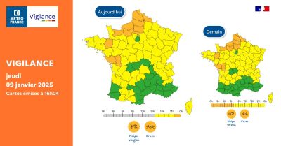 Pas-de-Calais, Somme மற்றும் Nord ஆகிய மூன்று மாவட்டங்களுக்கு பனிப்பொழிவு காரணமாக செம்மஞ்சள் எச்சரிக்கையும், Val-d'Oise, Oise, Seine-Maritime, Eure, Calvados, Ille-et-Vilaine, Vendée மற்றும் Deux-Sèvres ஆகிய மாவட்டங்களுக்கு வெள்ளம் காரணமாக செம்மஞ்சள் எச்சரிக்கையும் விடுக்கப்பட்டுள்ளது.