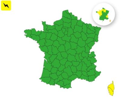 அதேவேளை, கடல்கடந்த மாவட்டங்களான Haute-Corse மற்றும் Corse-du-Sud ஆகிய மாவட்டங்களுக்கு புயல் மற்றும் மழை காரணமாக 'செம்மஞ்சள்' எச்சரிக்கை விடுக்கப்பட்டுள்ளது.