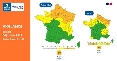 ஜனவரி 4, இன்று சனிக்கிழமை மாலை 4 மணியில் இருந்து இந்த எச்சரிக்கை விடுக்கப்படுகிறது. தலைநகர் பரிஸ் உட்பட இல் து பிரான்சின் அனைத்து மாவட்டங்களுடன், நாட்டின் வடகிழக்கு மாவட்டங்கள் என மொத்தமாக 30 மாவட்டங்களுக்கு 'செம்மஞ்சள்' நிற எச்சரிக்கை விடுக்கப்பட்டுள்ளது.