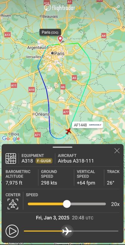 பரிஸ் சாள்-து-கோல் விமான நிலையத்தில் இருந்து புறப்பட்ட விமானம் ஒன்று இயந்திரப் பழுது காரணமாக 17 ஆவது நிமிடங்களில் மீண்டும் தரையிறங்கியது.