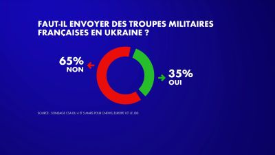 ”உக்ரேனுக்கு பிரெஞ்சு இராணுவத்தை அனுப்புவதை நீங்கள் விரும்புகின்றீர்களா?” என நேரடியாக பொதுமக்களிடம் கேள்வி எழுப்பப்பட்டது. இதில் 65% சதவீதமானவர்கள் ‘இல்லை’ (NON) என கருத்து தெரிவித்துள்ளனர்.