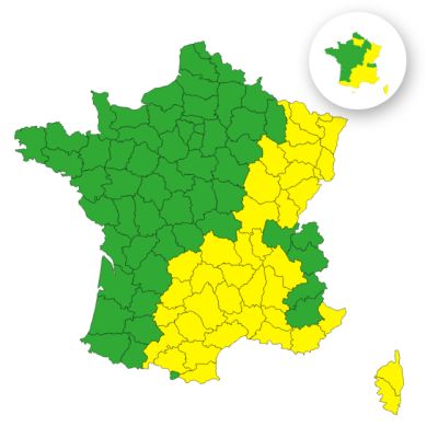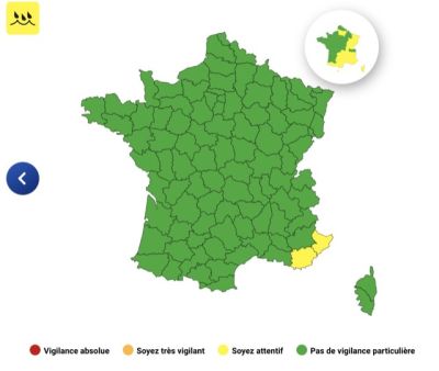 அதேவேளை Alpes-Maritimes மற்றும் Var மாவட்டங்களுக்கு மழை மற்றும் வெள்ள அனர்த்தம் காரணமாகவும் மஞ்சள் எச்சரிக்கை விடுக்கப்பட்டுள்ளது.