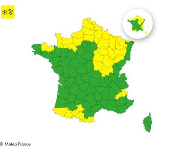 Aisne, Hautes-Alpes, Ardennes, Ariège, Aube, Calvados, Côte-d'Or, Côtes d'Armor, Eure, Haute-Garonne, Manche, Marne, Haute-Marne, Meurthe-et-Moselle, Meuse, Moselle, Nièvre, Nord, Oise, Orne, Pas-de-Calais, Pyrénées-Atlantiques, Hautes-Pyrénées, Pyrénées-Orientales, Haute-Saône, Saône-et-Loire, Seine-Maritime, Somme, Vosges மற்றும் Yonne ஆகிய 30 மாவட்டங்களுக்கு எச்சரிக்கை விடுக்கப்பட்டுள்ளது.