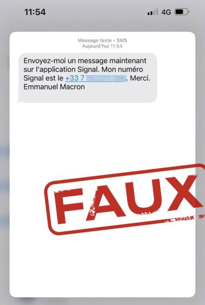 Signal எனும் செயலினைப் பயன்படுத்தி மோசடியில் ஈடுபடும் அக்குற்றவாளிகள் தொடர்பில் விசாரணைகள் மேற்கொள்ளப்பட்டு வருவதாக தெரிவிக்கப்படுகிறது. 'வணக்கம், என்னுடைய Signal இலக்கமூடாக உங்களுடைய செய்திகளை அனுப்பவும். என்னுடைய தொலைபேசி இலக்கம் +33****** - இம்மானுவல் மக்ரோன்" என குறிப்பிடும் இந்த குறுந்தகவல் (Envoyez-moi maintenant un message sur l’application Signal. Mon numéro Signal est + 33 7… Merci. Emmanuel Macron.) தற்போது பரபரப்பாக தொலைபேசிகளுக்கு அனுப்பப்படுகிறது.