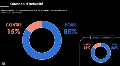 இந்தக் கணக்கெடுப்பில் பிரான்சில் புதிய சிறைச்சாலைகள் அமைப்பதற்கு 85 சதவீத மக்கள் ஆதரவு தெரிவித்துள்ளனர்.