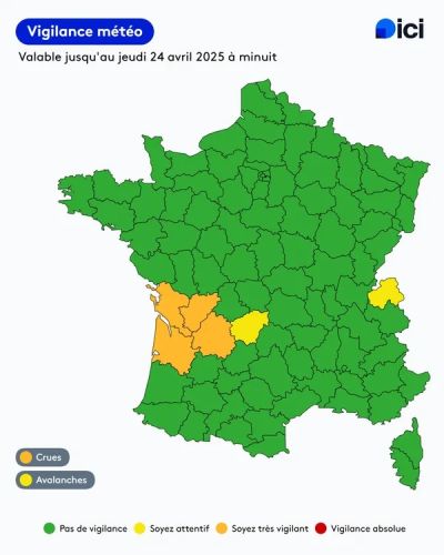 Charente-Maritime, Charente, Dordogne மற்றும் Gironde ஆகிய மாவட்டங்களுக்கு இன்று இரண்டாவது நாளாக செம்மஞ்சள் எச்சரிக்கை விடுக்கப்பட்டுள்ளது. குறித்த மாவட்டங்கள் உட்பட நாட்டின் மேற்கு பகுதிகளில் கடந்த ஞாயிற்றுக்கிழமை முதல் தொடர்ச்சியாக அடைமழை கொட்டித்தீர்த்து வருகிறது. இதனால் அங்குள்ள ஏரிகள், குளங்கள் ஆறுகள் நிரம்பி வழிகின்றன.
