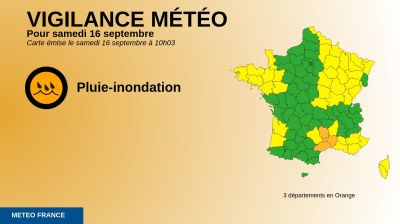 Lozère, Gard ,Hérault. Cénévole ஆகிய மாவட்டங்களில் கடுமையான மழையுடனான வெள்ளத்திற்கான கடுமையான எச்சரிககை விடுக்கப்பட்டுள்ளது.
