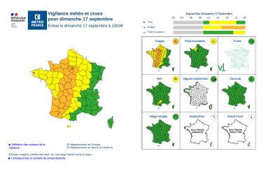 இல்-து-பிரான்சின் மாவட்டங்கள் உட்பட தற்போது பிரான்சின் 33 மாவட்டங்களிற்கு பெருமழை மற்றும் கடுமையான காற்றிற்கான செம்மஞ்சள் எச்சரிக்கை வழங்கப்பட்டுள்ளது.